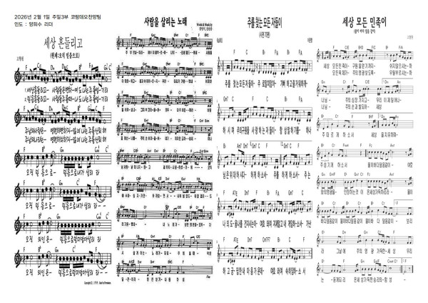 2월 1일 주일 3부 코람데오 찬양팀 악보