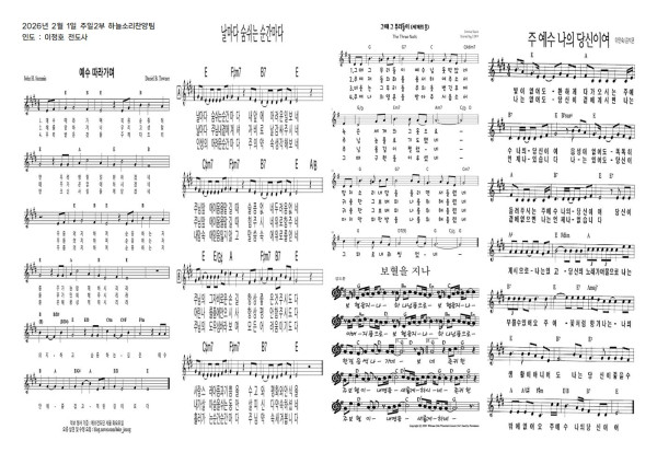 2월 1일 주일 2부 하늘소리 찬양팀 악보