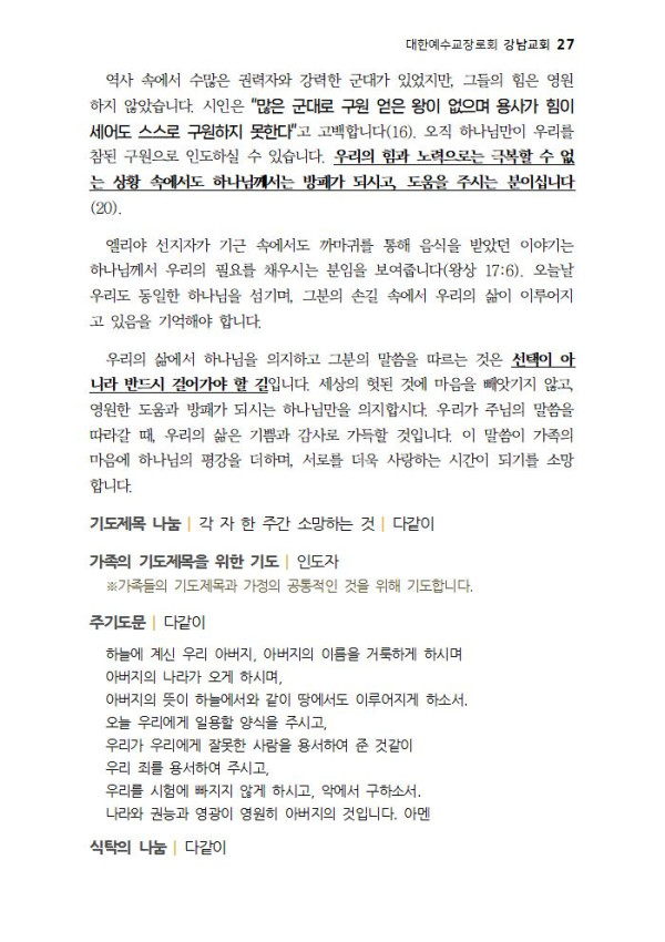 [공지]이곳은 성도님들의 주간예배생활을 돕는 묵상을 게시하는 곳입니다.
